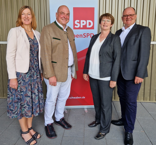 Von links: Rita Ortler, Peter Moll, Claudia Müller, Georg Wiedemann Bild (L. Heger)Einen Wechsel gibt es an der Spitze der SPD-Kreistagsfraktion: Kreisrat Peter Moll, der seit vier Jahren Vorsitzender seiner Fraktion ist, wird beruflich derzeit stark zeitlich beansprucht. Dies hat Auswirkungen auf die Wahrnehmung der mit diesem Amt verbundenen Sitzungsteilnahmen. Er übergibt den Fraktionsvorsitz deshalb zum 1. September 2024 an seine bisherige Stellvertreterin, Claudia Müller.