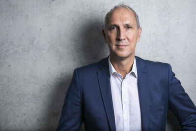 MdB Christoph Schmid lächelnd vor einer grauen Wand